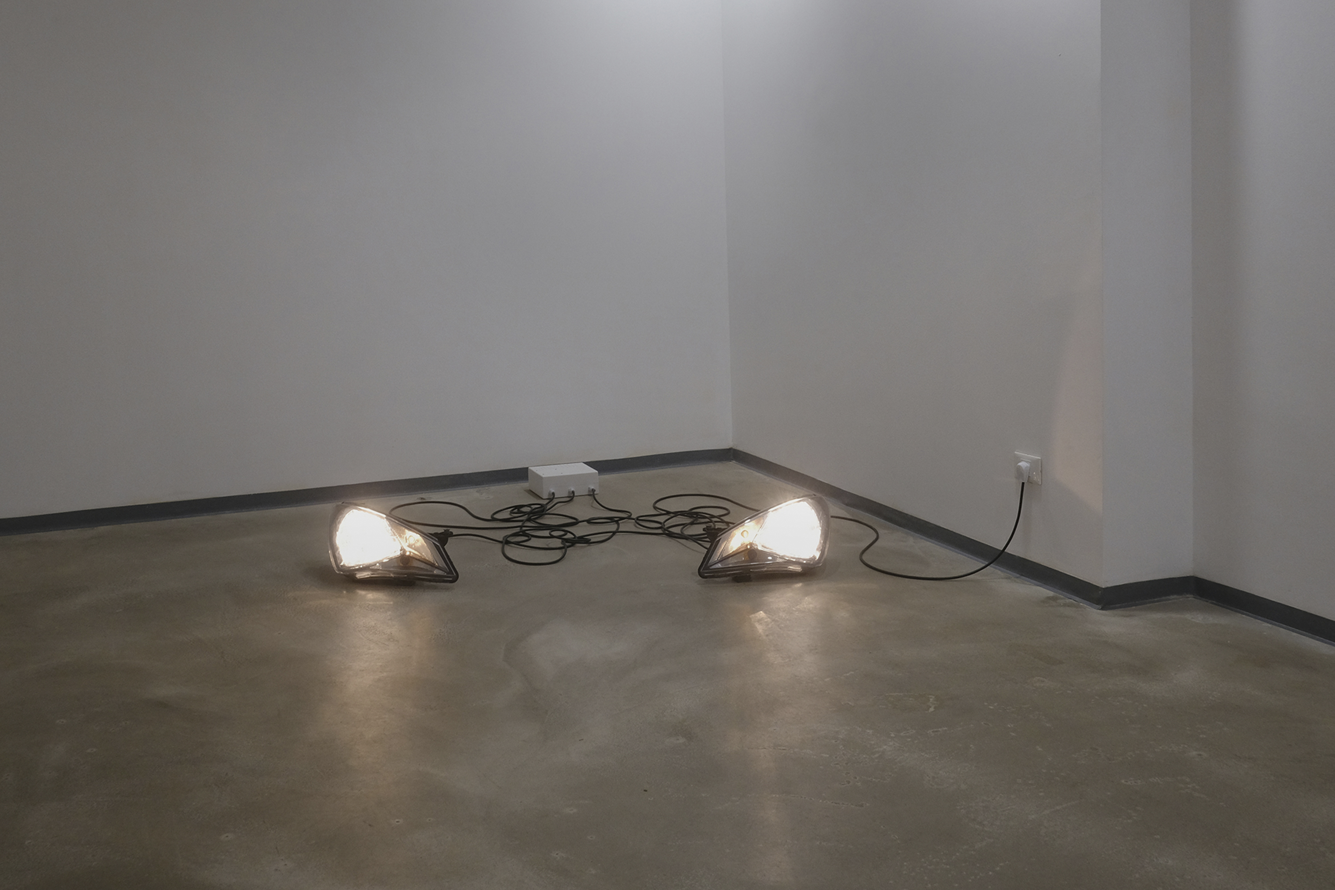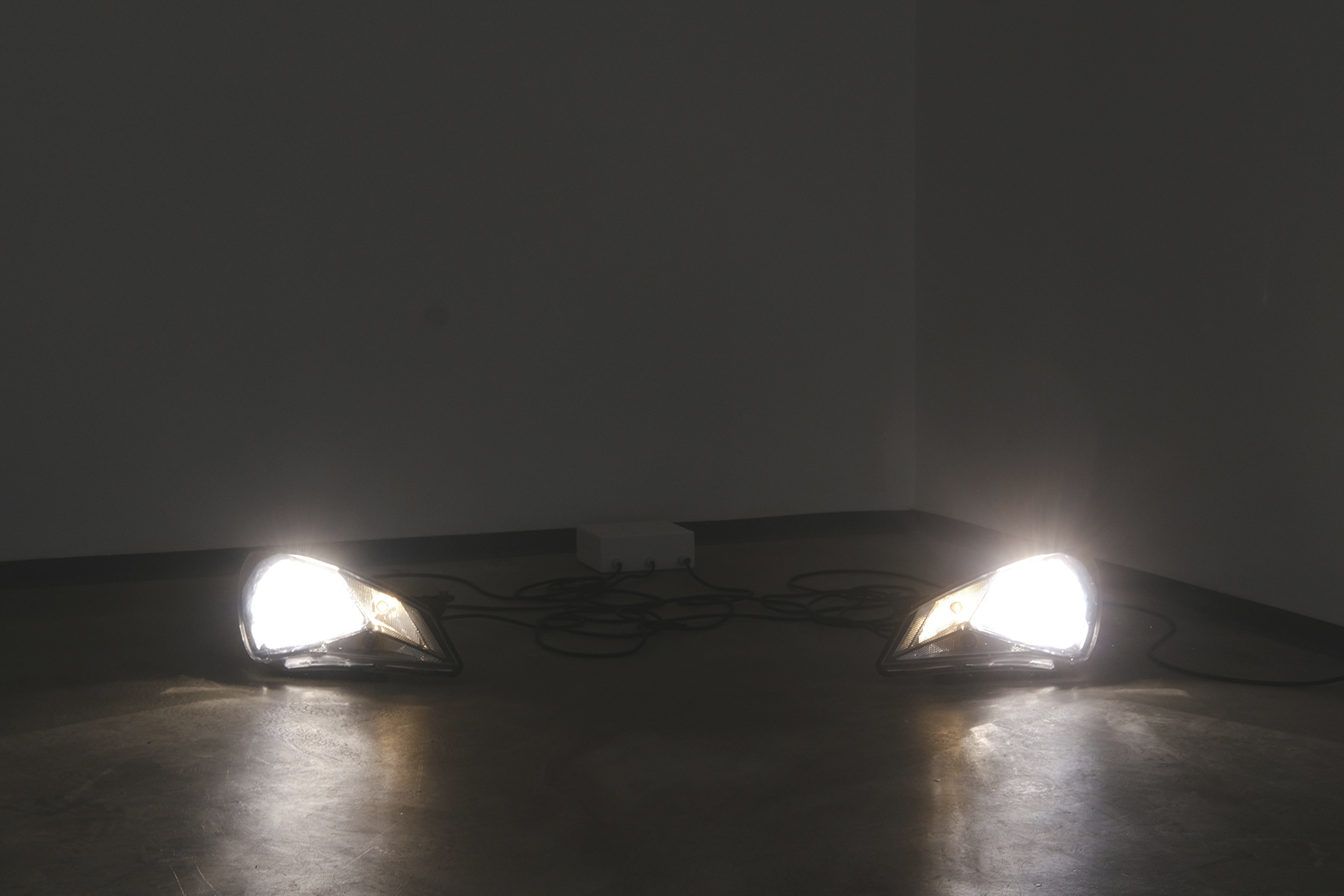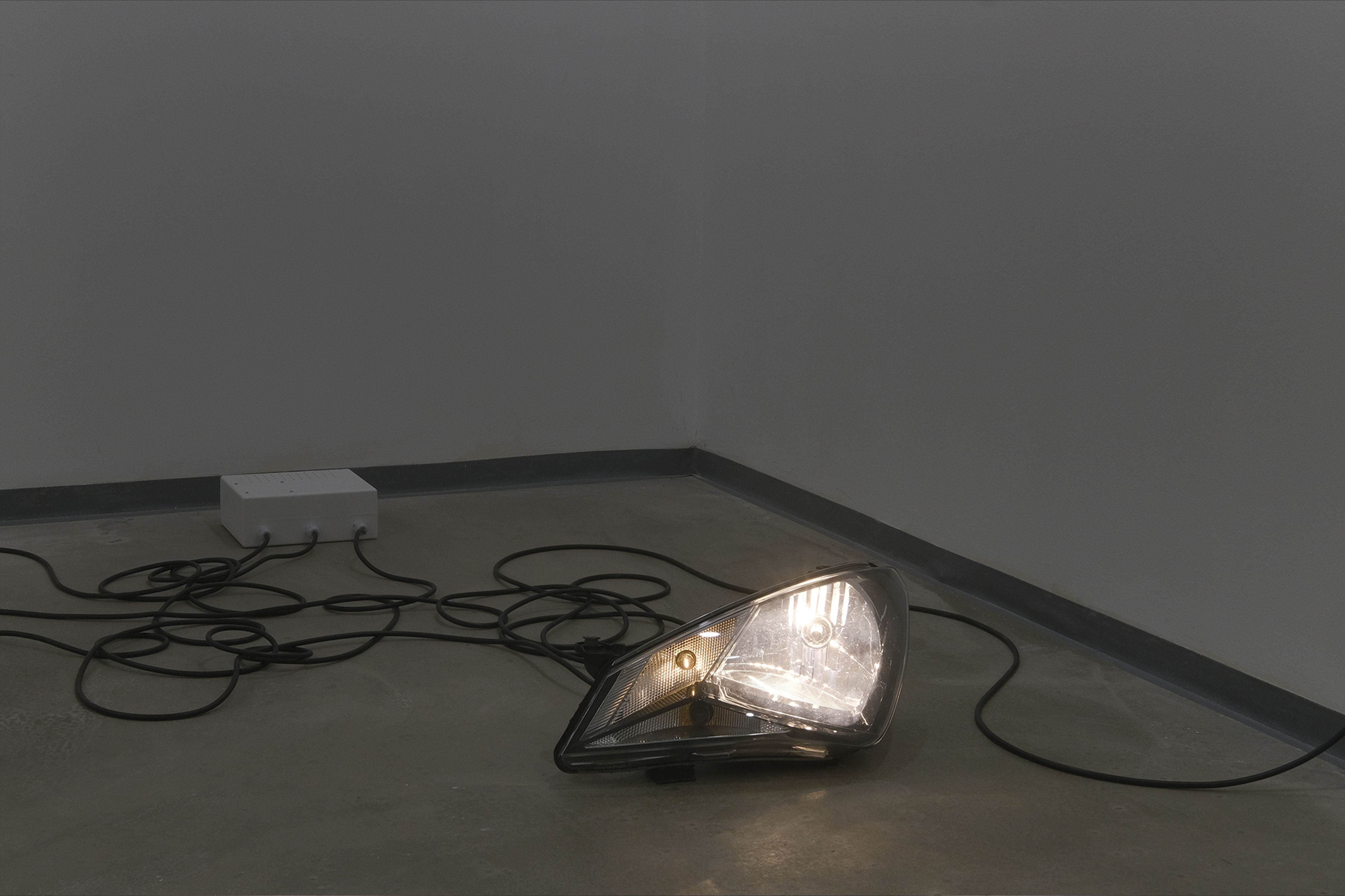 Dimensions variable, mixed media (car headlights, controller, electro-mechanical relays)